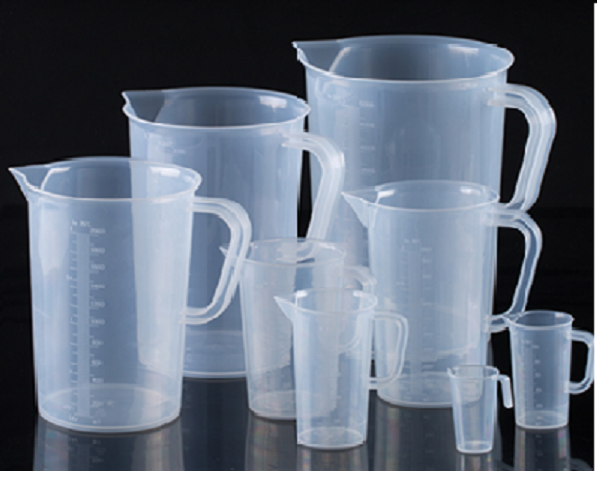Ca nhựa chia vạch dùng để đong chất lỏng, hóa chất, mẫu thí nghiệm,...