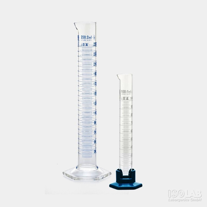 Chân đế rộng và chắc chắn, giúp ống đong đứng vững trên mặt bàn thí nghiệm, hạn chế rủi ro đổ vỡ khi thao tác.